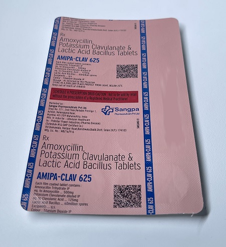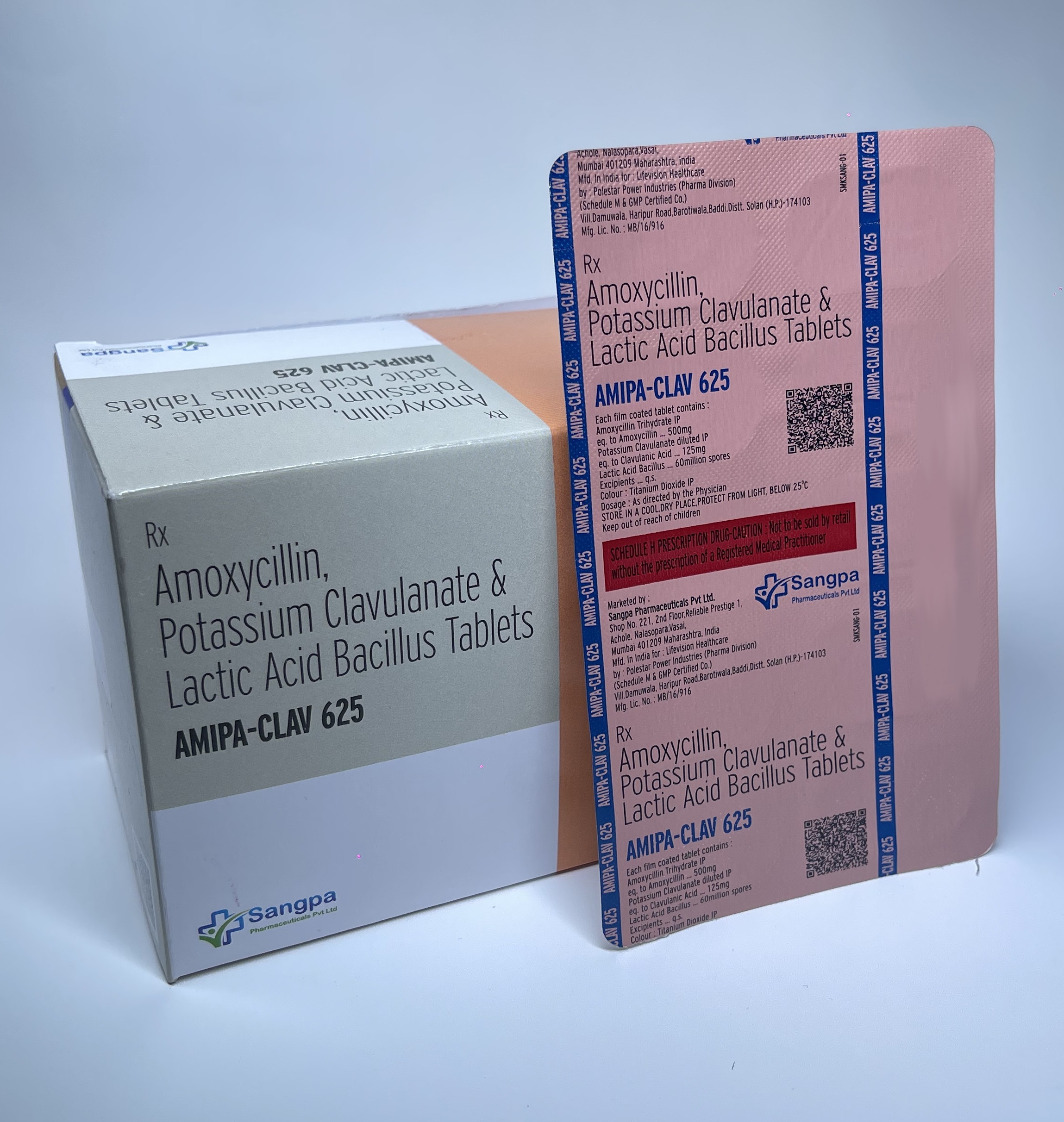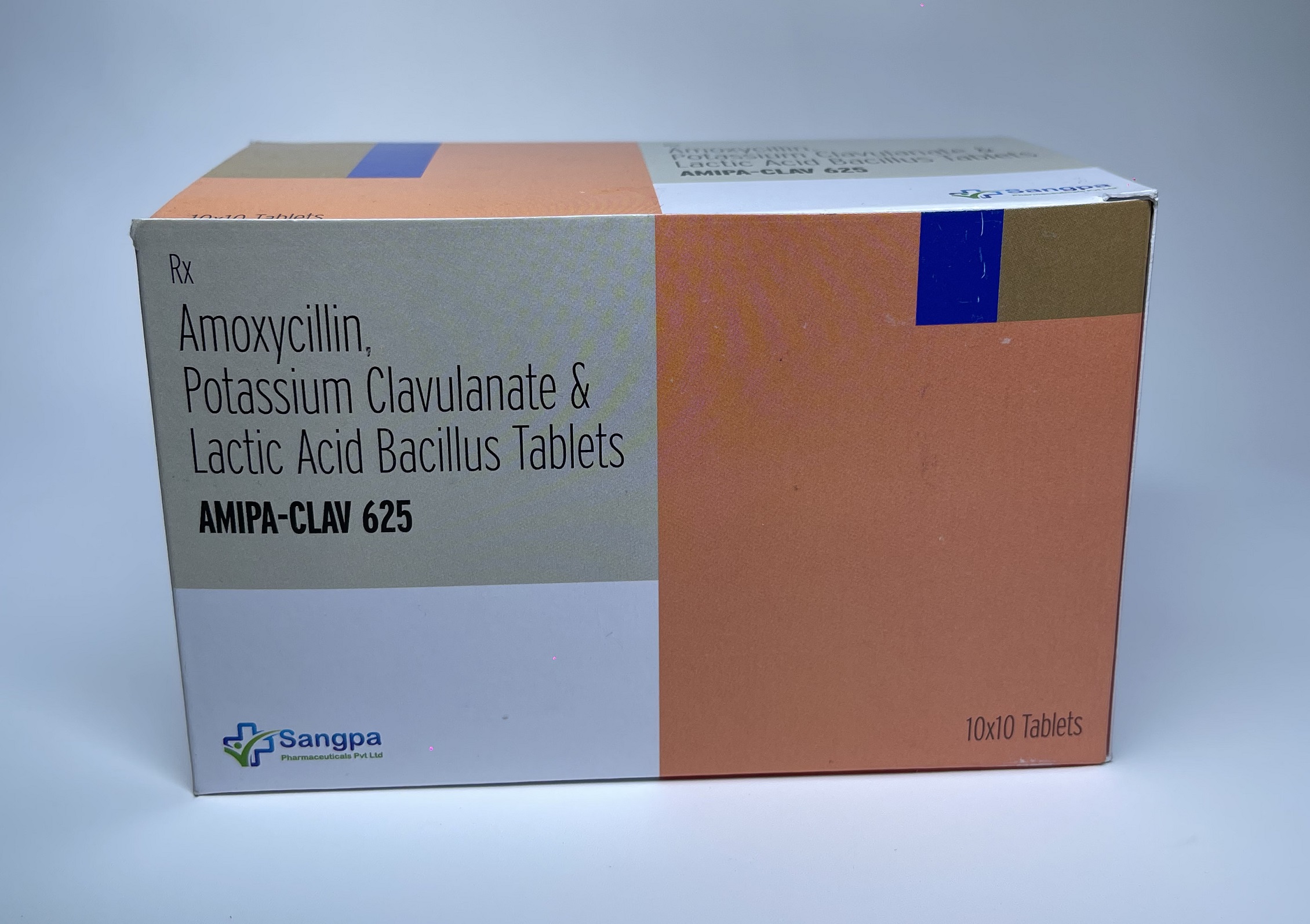 Amipa-clav 625 Tablet is an antibiotic that helps your body fight infections caused by bacteria. It is used to treat infections of the lungs (e.g., pneumonia), ear, nasal sinus, urinary tract, skin, and soft tissue. It will not work for viral infections such as the common cold.
